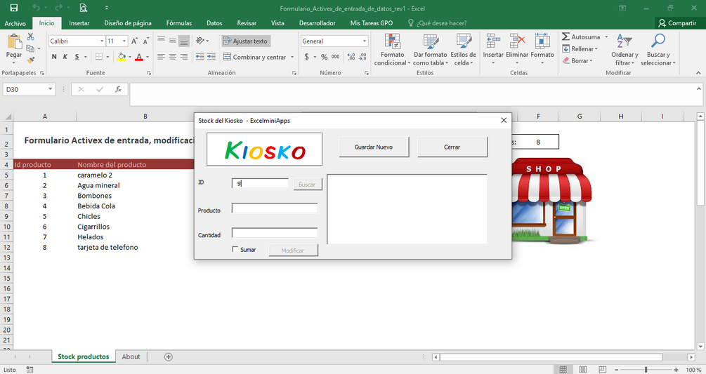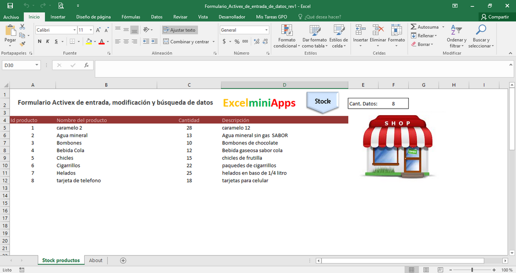 Plantilla para “Ingreso, búsqueda y modificación de datos en Excel con Formulario ActiveX” en Excel. No es una aplicación definitiva, solo sirve de referencia. Si no está seguro de que le sea útil por favor NO LA DESCARGE. Se recomienda que lo usen para ver las formulas, estudiar el código para luego partiendo desde la base poder crear un Gestor totalmente personalizado desde cero. La plantilla está libre de protección. Se puede ver el código, las formulas, etc. Se recomienda tener cuidado de no modificar el código sin antes ver cómo funciona.