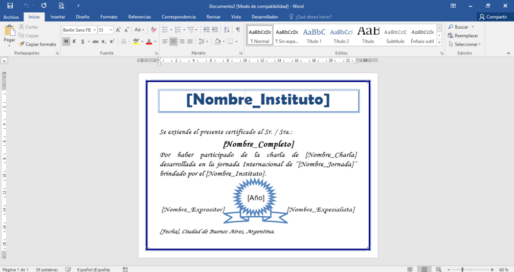 Plantilla que nos muestra un método para pasar datos de Excel a Word con Macro.